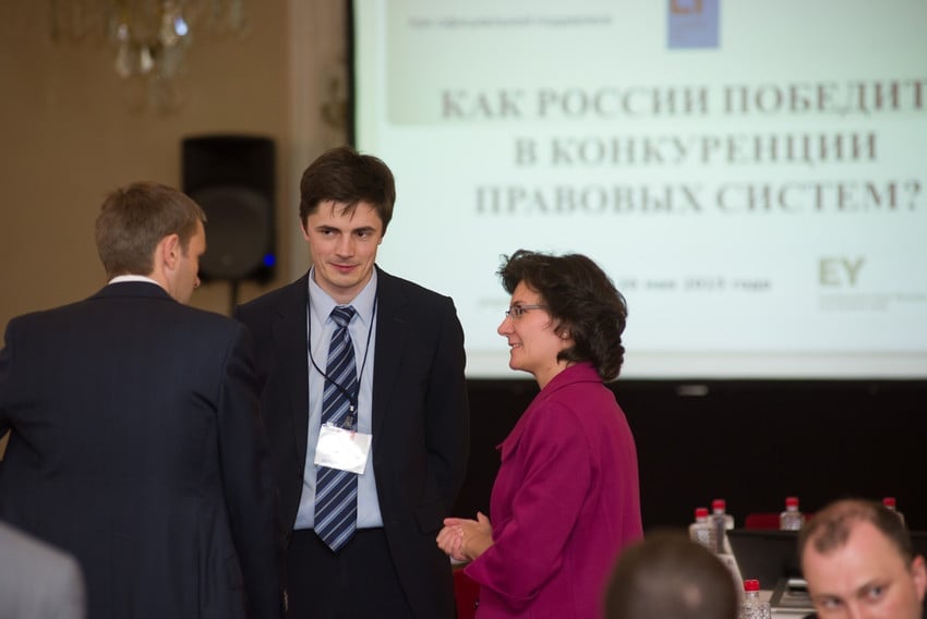 Алексей завершил выступление выводом о том, что целями повышения конкурентоспособности национальной правовой системы являются создание комфортных условий для развития (бизнеса, человеческого капитала) и завоевание лидерства в процессах регионализации (региональная интеграция) и глобализации.
