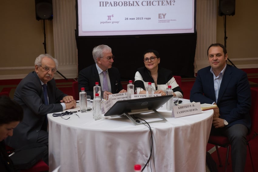 Сергей Пепеляев, управляющий партнёр Пепеляев Групп, подхватил идею Г. Гаджиева о необходимости перехода от импорта правовых ценностей к экспорту российских правовых ценностей. Он прямо поставил вопрос, «а что мы должны сделать, чтобы перейти к экспорту наших идей». Отметил, что 4-я часть ГК РФ стала самой передовой, которой завидуют и зарубежные юристы, частично налоговое законодательство, антимонопольное можно отнести к прогрессивным отраслям.