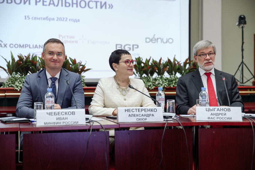 В дискуссии Антимонопольного Актива участвовали Денис Гаврилов, партнер антимонопольной практики юридической фирмы DENUO и модератор сессии, Андрей Цыганов, заместитель руководителя ФАС России, и Иван Чебесков, директор Департамента финансовой политики Минфина России. Они обсудили особенности антимонопольного контроля за сделками M&A в условиях новой реальности.