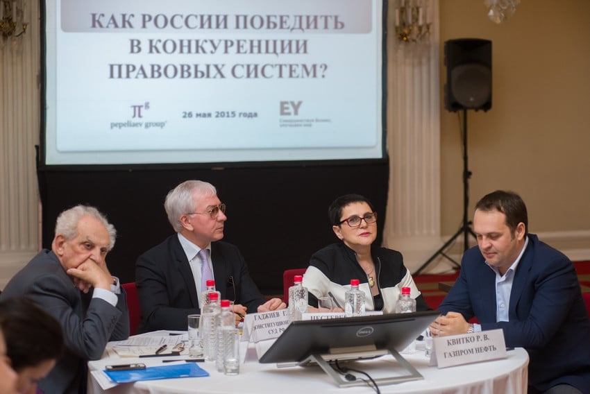 Сергей Пепеляев, управляющий партнёр Пепеляев Групп, подхватил идею Г. Гаджиева о необходимости перехода от импорта правовых ценностей к экспорту российских правовых ценностей. Он прямо поставил вопрос, «а что мы должны сделать, чтобы перейти к экспорту наших идей». Отметил, что 4-я часть ГК РФ стала самой передовой, которой завидуют и зарубежные юристы, частично налоговое законодательство, антимонопольное можно отнести к прогрессивным отраслям.