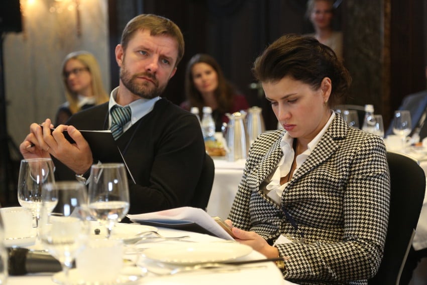 Конференции предшествовал бизнес-завтрак, на котором выступил В.Н. Плигин, председатель Комитета Государственной Думы по конституционному законодательству и государственному строительству. Темой завтрака было заявлено «Взаимодействие бизнеса и власти в построении эффективной правовой системы». Владимир Николаевич обратил внимание аудитории на два документа. Первый — Кодекс административного судопроизводства (КАС) недавно вступил в силу, по установленным в нём процедурам будет рассматриваться 300-400 тысяч дел в год. Спикер попросил внимательно изучить КАС и при обнаружении неточностей или ошибок (всякое бывает!) довести эту информацию до Думы. При этом письмо должно быть кратким и точным, без эмоций.
